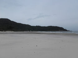 Desarmamos la carpa, arme la mochila y pasamos por la casa de una señora que vendía agua, a la que le compramos dos botellitas y de paso le pedimos si es que nos podía guardar las cosas, dice que sí sin ningún problema, entonces dejamos todo y fuimos a caminar por la inmensa playa de Naufragados.